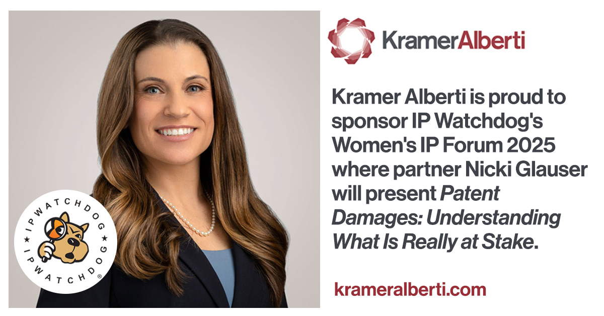 Nicki Glauser, a partner at Kramer Alberti, will be a featured speaker presenting “Patent Damages: Understanding What is Really at Stake” at this year’s IP Watchdog Women’s IP Forum 2025. The conference, now in its second year, focuses on opportunities for women in the intellectual property field, with “Master Level” female industry veterans, such as Ms. Glauser, sharing their knowledge and expertise with the audience, and mentoring younger rising stars at this dedicated assembly of women. Kramer Alberti is a proud sponsor of this conference.